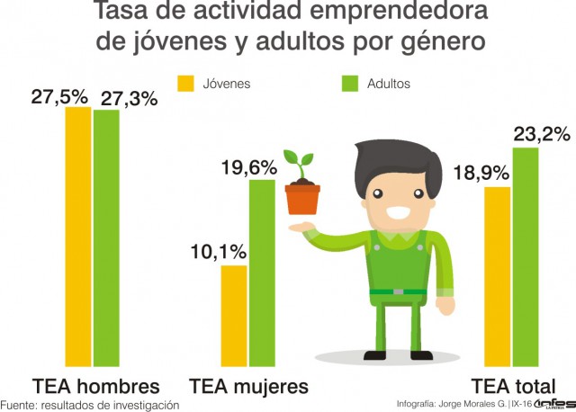 - "Encontramos que el emprendimiento femenino se da más en mujeres mayores de 40 años. Esto puede ser porque la mujer en sus primeros años de vida se dedica a su familia y luego decide emprender".