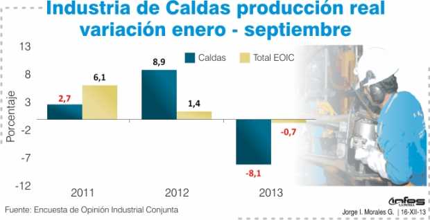 A la par con la industria nacional, que se convirtió en el sector más golpeado por la crisis internacional, la actividad en Caldas concluyó entre enero - septiembre con un descenso del 8,1%, indicador que vuelve a poner en aprietos al sector.