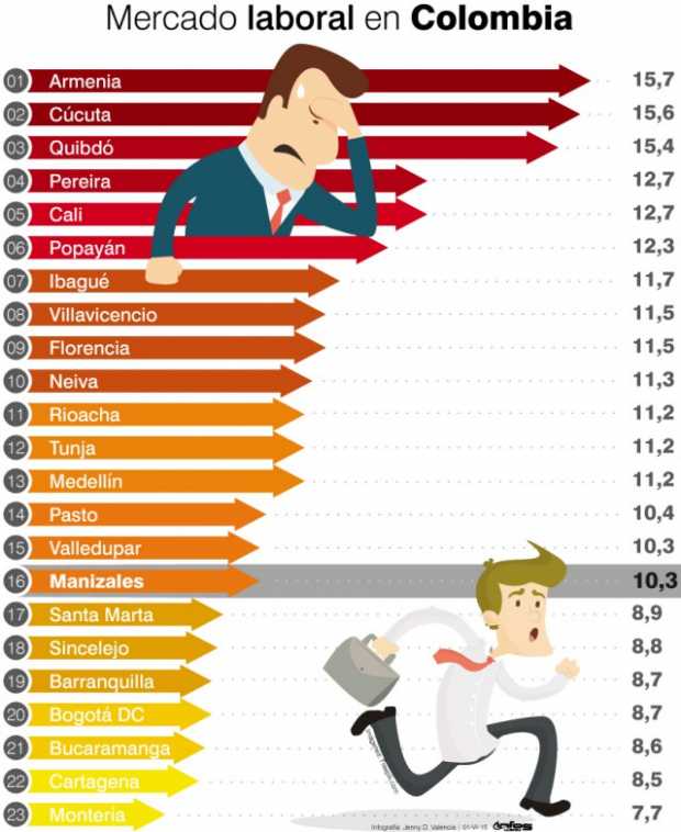 Pese a estas críticas sobre el empleo, el informe entregado ayer por el DANE destaca a Manizales y Villamaría como las más favorecidas en el Eje Cafetero en materia de desempleo.