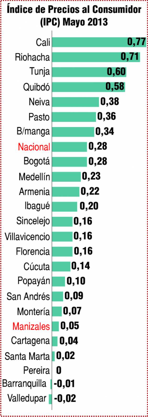 Manizales volvió a estar entre las ciudades con la menor presión inflacionaria en mayo pasado.