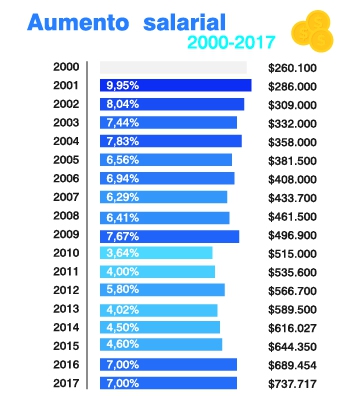 El último acuerdo por concenso se logró en el 2013, cuando se definió un ajuste para el 2014 de $616 mil 27. A partir de allí las mesas se han roto, hecho que para la Central Unitaria de Trabajadores (CUT) demuestra la desidia del Gobierno y la falta de conciencia ante el alza de precios de la canasta familiar, el impacto de la reforma tributaria y el subempleo que supera el 60%.