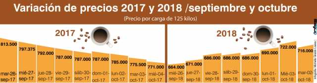 Desde esa fecha hasta ayer hubo un repunte de $56 mil por carga de 125 kilos, hasta ubicarse en los $716 mil (ver infográfico). El precio externo también superó la barrera del dólar y se ubicó en 1,06 dólares por libra.