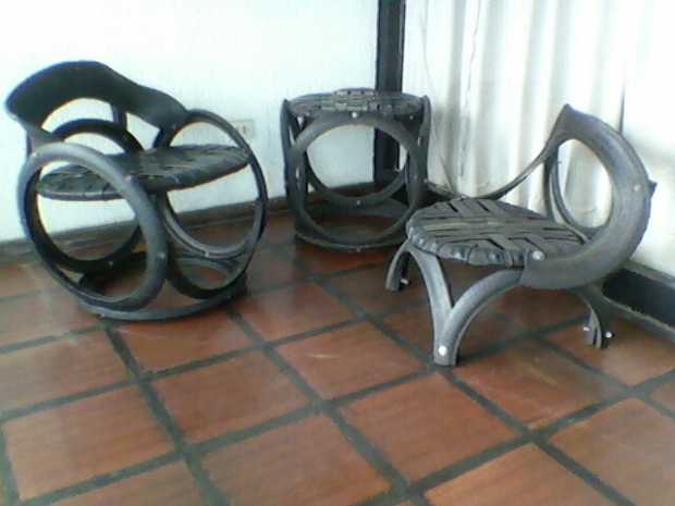 Utilizar llantas y neumáticos de bicicleta para fabricar mobiliario para el hogar, como sillas, mesas, percheros es el fin de la empresa de licenciado en Biología Juan Martín Hoyos.