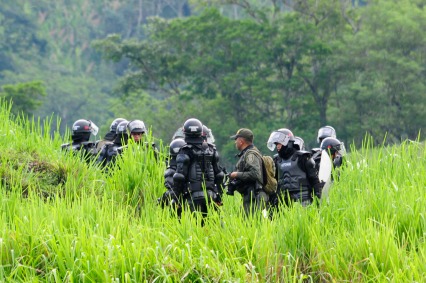 Hacia las 3:00 de la tarde, tres escuadras conformadas por 10 uniformados cada una, subió hacia la montaña para evitar que los indígenas continuaran lanzando rocas a la vía.