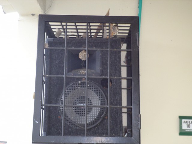 Las avispas están en las aulas, baños, ventanas, patio, restaurante escolar y bafles del sonido. "Se apoderaron de la edificación", dice el director de la banda estudiantil del música del centro educativo, Ferney Cardona.