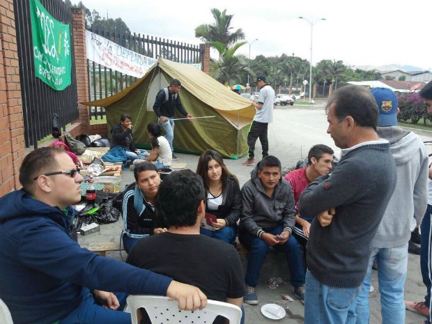Alumnos y miembros de Sindesena Caldas duermen desde el jueves en la entrada del campus Manizales, el único bloqueado de la regional Caldas.