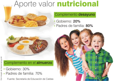 Son unos gramajes establecidos por los nutricionistas del Ministerio de Educación, que corresponde al 33% de las calorías diarias. El resto les toca a los padres".