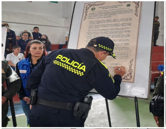 Esta idea surge teniendo en cuenta que tanto en medios de comunicación como en redes sociales se estaba presentando un tipo de violencia escolar a nivel nacional debido a esto, pues la policía metropolitana de Manizales tomamos una iniciativa con el grupo de infancia y adolescencia y demás autoridades de querer impactar y evitar que esto se presente en la ciudad de Manizales, lo que se pretende al realizar esta actividad precisamente es que se articulen los esfuerzos de la autoridad política administrativa y a otras autoridades de control, la institucionalidad en este caso la Policía Nacional y vincular también particularmente a este trabajo el personal de docentes y estudiantes de los sectores educativos precisamente para que esta actividad de la firma del pacto en contra de la violencia escolar ayude a que no se siga presentando o no se presente en lo más mínimo en los estudiantes de la ciudad de Manizales.