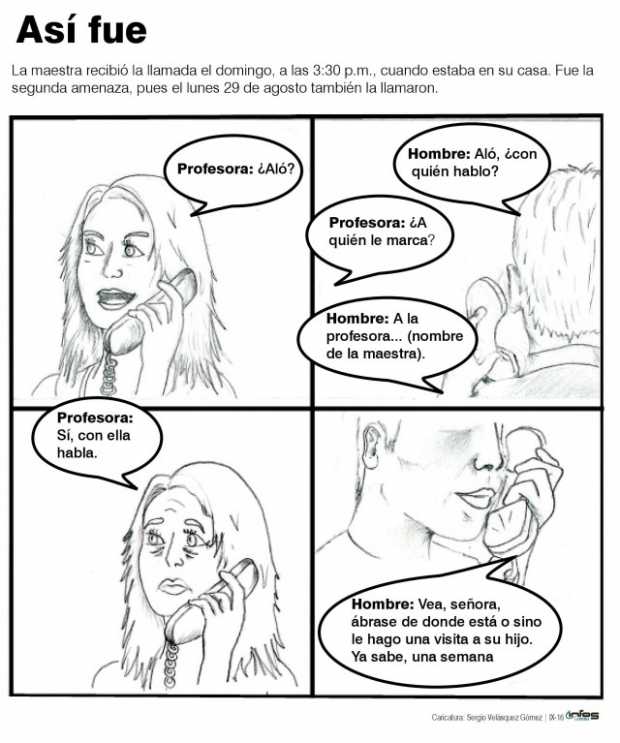 Comentó que la primera amenaza no se la tomó en serio, debido a que era la voz de un joven. La segunda sí la atemorizó, pues era un adulto. Dice que ella y su familia hanrecibido un trato hostil desde que arribaron a la localidad. “Tuve problemas con unos padres de familia y con unos estudiantes. Han tratado mal a mis hijos”.