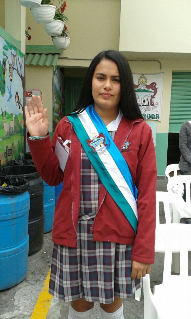 En la I.E. Colegio Perpetuo Socorro de Manizales eligieron a la estudiante Evelin Dahianna Ossa para que represente en la Personería a la comunidad escolar. La estudiante agradece a quienes depositaron su voto de confianza y promete que cumplirá las propuestas.