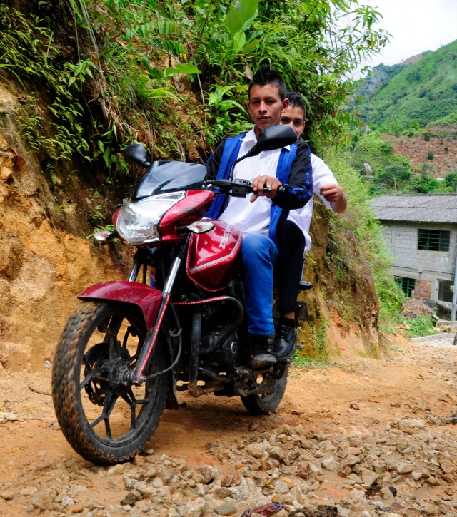 Los motos son la única alternativa, debido a que en estos lugares las mulas y los caballos se utilizan únicamente para carga. El transporte escolar no se ve ni en sueños.