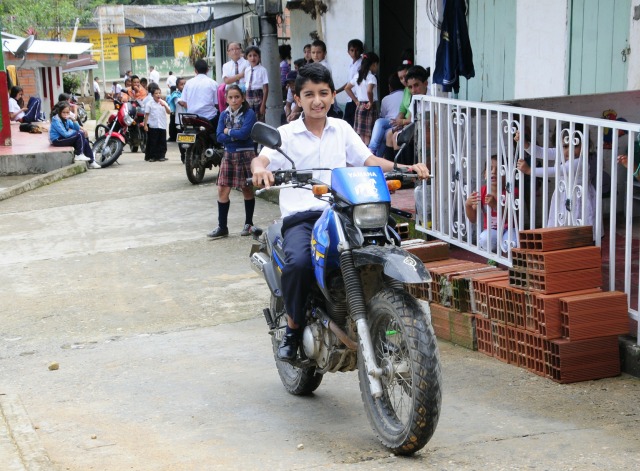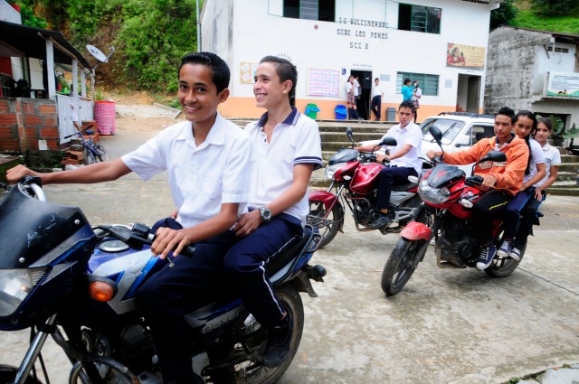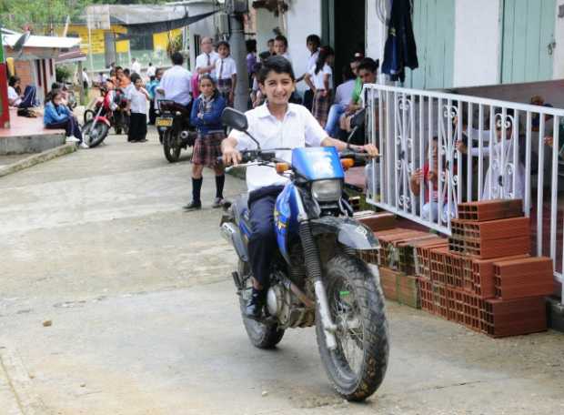 Agrega la coordinadora que de los 90 estudiantes que tiene el colegio, 15 son de Los Pomos, 2 de Patio Bonito y el resto de La Palmera, de donde llegan en motos 10 estudiantes de los 25 que cursan bachillerato. Cada uno con dos y en algunos casos hasta tres pasajeros, entre hermanos, primos o compañeros que se encuentran en el camino.