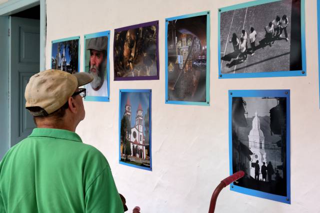 Un visitante observa las fotografías de Luis Fernando Rodríguez.
