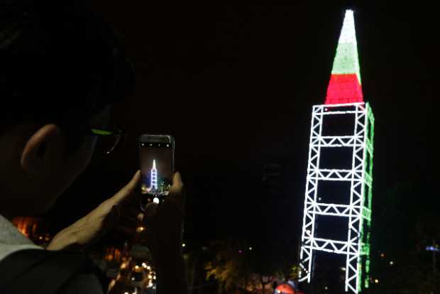 A las 7:30 de la noche la estructura de madera se iluminó de verde al son de la Feria de Manizales. Después se vistió de los colores de la bandera de la ciudad y de Colombia. Durante la inauguración Jhon Jairo Granada, gerente de Chec, expresó que la iluminación es en tecnología led DMX y cada uno de los 23 mil 980 bombillas se pueden programar en intensidad, secuencia y hacer proyecciones. "Este es un regalo que le estamos dando a la ciudad con una inversión de $380 millones y seremos nosotros los que estaremos a cargo de su mantenimiento, mientras que la Alcaldía definirá en qué horarios se prende", dijo Granada.