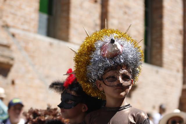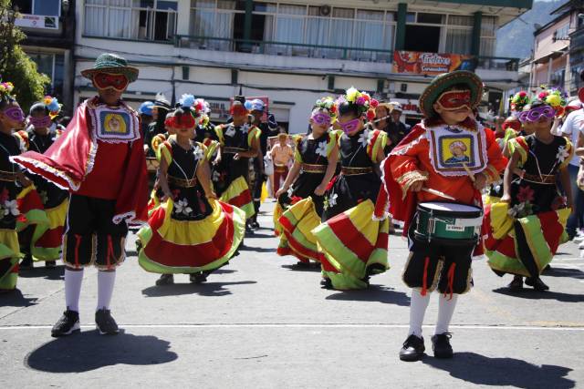 “¡Cuadrillas listas que vamos a empezar!”, se escuchó justo a las 11:26 de la mañana a un costado de la Plaza San Sebastián en Riosucio. Era Jhon Grisales, de la logística del desfile, quien pertenece a la colonia de Medellín. A esa hora ya se formaba una fila de más de una cuadra, repleta de pequeños maquillados, con antifaces y disfraces, preparados para caminar por las calles al son de sus letras y ritmos.