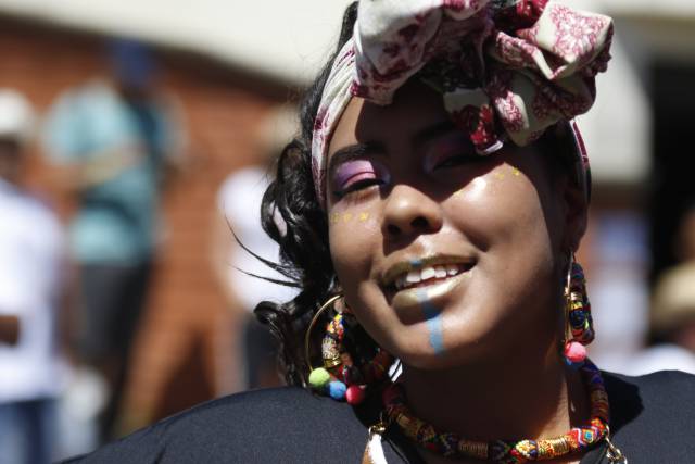 Allí, la profesora Jénnifer Serna acompañaba a sus pupilos y ayudaba en toda la preparación. Faltaba un poco más de una hora para iniciar el desfile y ellos ya estaban maquillándose y vistiéndose para entonar por completo con el color del carnaval.