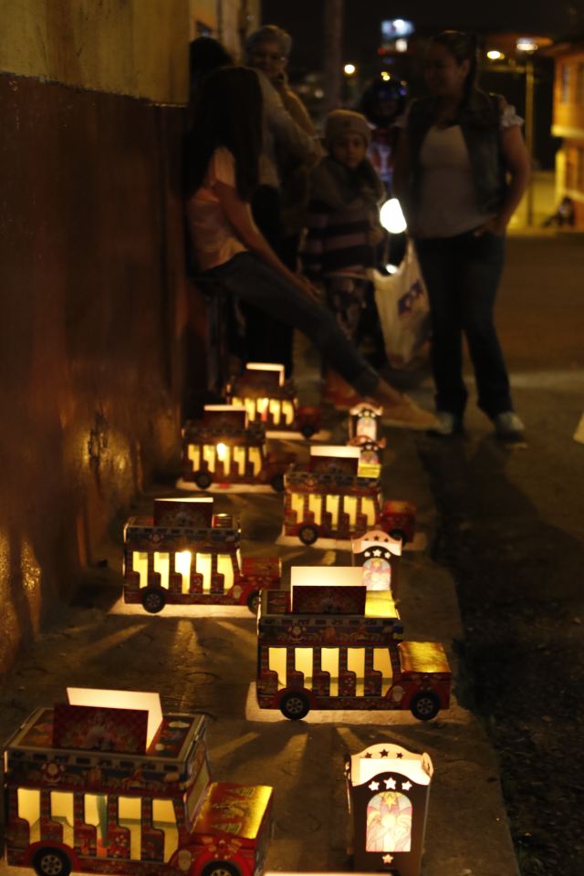 Con chivas iluminaron las calles en el barrio San José. Sus colores y las tradicionales figuras religiosas también hicieron parte de la decoración de los pequeños carritos a luz de vela.