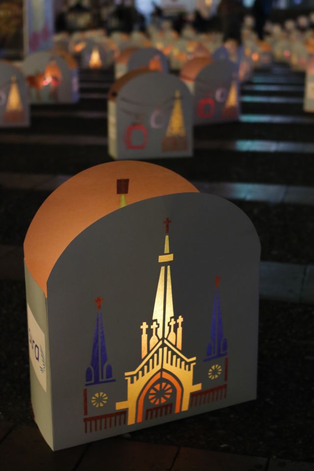 La Catedral, chivas, arrieros y campanas fueron algunas figuras que se recrearon en los faroles que alumbraron la Noche de las velitas en Manizales.