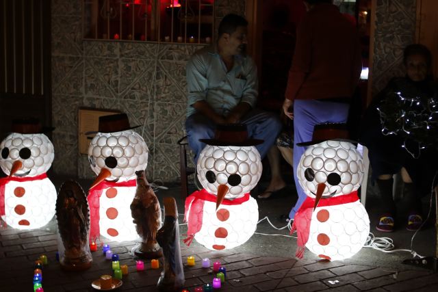Los elementos reciclables fueron materiales para crear faroles. Estos muñecos de nieve, elaborados con vasos plásticos, llamaron la atención.