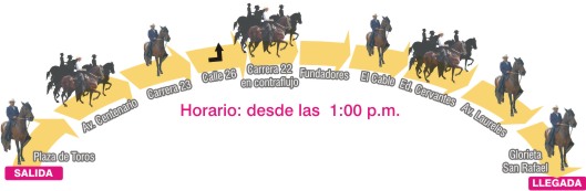 "Hasta las 11:00 a.m. entrarán los carros que transportan los caballos. La cabalgata comenzará a las 12:00 del día, pero el último equino saldrá a la 1:00 p.m. Teniendo en cuenta que habrá desfile de caballitos de palo la idea es que los niños tomen ventaja", dijo.