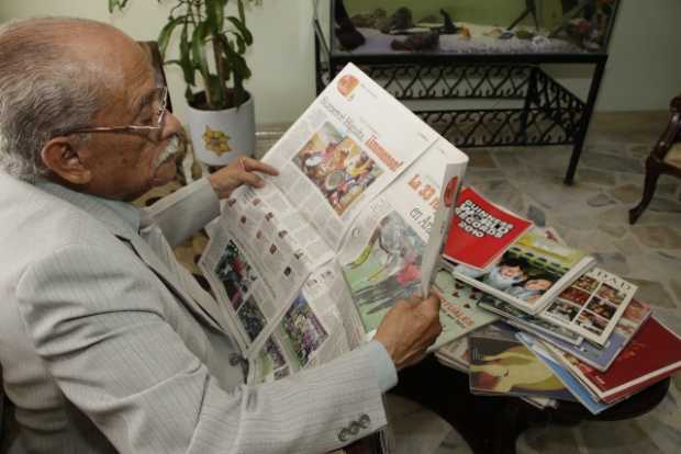 José Agobardo Gaviria cumple hoy 90 años y su vitalidad hace que aparente menos edad. Todas las mañanas acompaña su desayuno con varios sorbos de lectura, pues al bajar al comedor está sobre la mesa el periódico LA PATRIA para escrudiñar sus páginas.