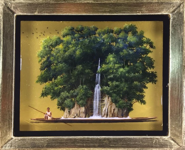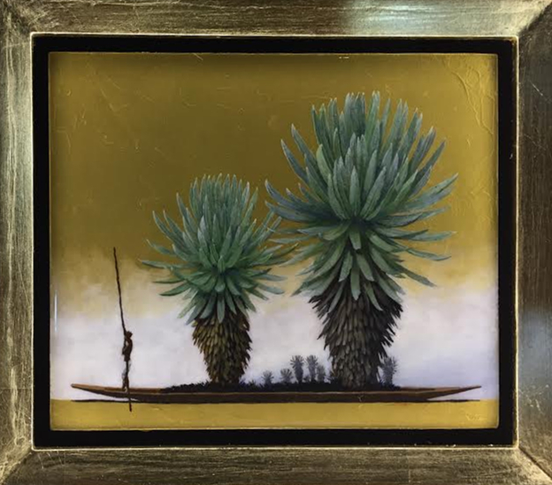 Los cuadros son acrílicos sobre madera con un terminado en resina, en pequeño formato. "El acabado tiene la intención de que se vea más como una joya", explicó. El montaje de la instalación lleva al espectador a través de un viaje por distintos paisajes, de la zona Pacífica a la Atlántica, de la alta montaña al mar.