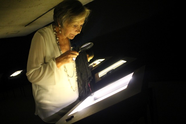 La idea de poner una lupa junto a cada cuadro surgió de una reunión que hizo con amigos para mostrarles algunos de los cuadros que había acabado. "Invité a mis amigos a mi casa, a dármelas de mucho y a que me felicitaran por el trabajo y ninguno me decía nada, pasaban los cuadros casi sin mirarlos. Hasta que una amiga me dijo: oye nadie está viendo nada, entonces saqué una lupa y ahí sí se interesaron en los detalles, y a partir de ahí esta se vuelve parte del proyecto", explicó. "Es una forma de decirle al espectador mírenos bien a los colombianos, no somos todo lo que la gente dice y además cuando la gente se acerca para ver el detalle, hace una reverencia ante nuestro país", dice con una sonrisa.