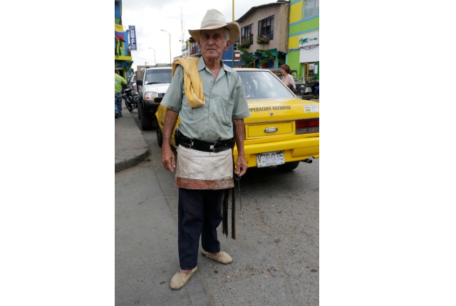A Gustavo Zapata, de 75 años, le dicen el arriero del pueblo. "Llevo 52 años en esto y todavía lo aguanto. Cuando tenía 23 años, me provocó ponerme a trabajar con las bestias. Ahí voy. Hay días que madrugo y otros que no. Si hay qué hacer, me toca levantarme a las 4:00 de la mañana. Camino por las veredas donde me contratan. Siempre me visto con sombrero, poncho, cinturón, delantal, cotizas y peinilla. Este pueblo ha sido una belleza, ¿o será porque lo quiero?", se ríe.
