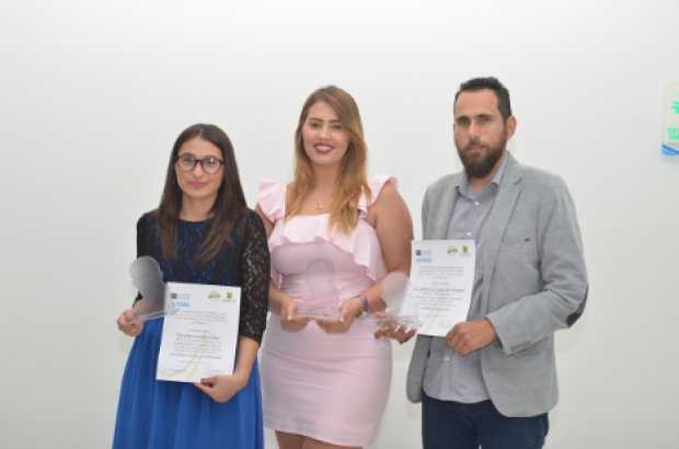 Ellos son Estefanía Parra Merchán, Laura Catalina Uribe Tarazona y el docente Joaquín Gómez, en representación de Santiago Arango Jaramillo.