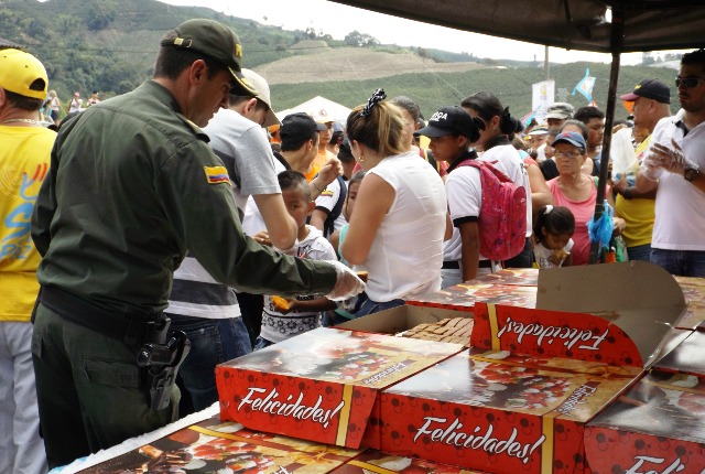 En esta ocasión repartieron torta para 5 mil personas, también hubo juegos pirotécnicos.