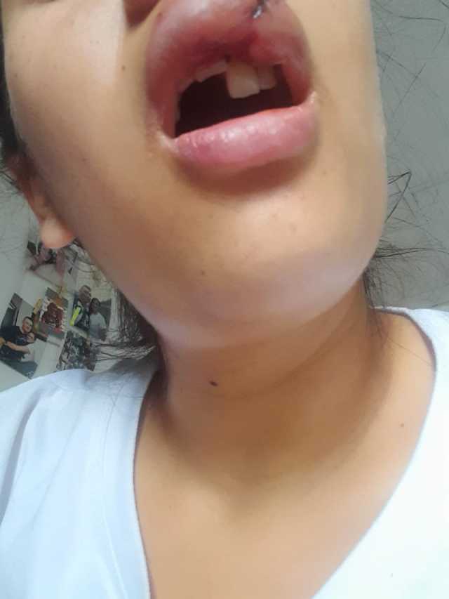 A Ana le hicieron una cirugía maxilofacial el sábado y le dieron incapacidad. Tiene fracturas en dientes 11, 12 y 13, y herida abierta en labio superior. Hoy irá a Medicina Legal, ya denunció en Fiscalía y en derechos humanos de la Policía.