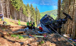 La tragedia en este sitio turístico conmociona a los italianos. La cabina del teleférico que conecta las estaciones de Stresa y Mottarone, en un paraje de montaña de la región de Piamonte, cayó al vacío estrellándose en un bosque.