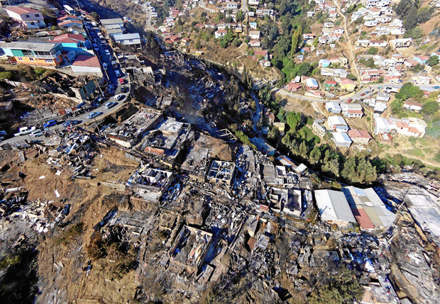 El siniestro, el mayor de la historia en esa ciudad que mira al Pacífico, se desató el sábado pasadas en un sector forestal del camino La Pólvora, cercano a la ciudad de Valparaíso, a unos 120 kilómetros de la capital, pero se expandió rápidamente hacia zonas pobladas de varios cerros vecinos.
