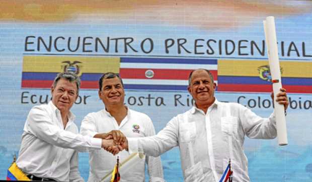 Hoy se celebra "la amistad, respeto y espíritu de colaboración de los tres países", dijo Solís, en tanto que Santos señaló que "países con límites definidos pueden trabajar juntos sin temas de discusión".