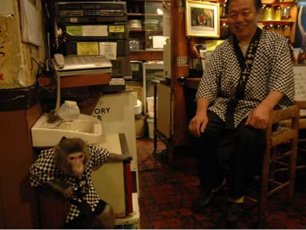 En la taberna Kayabukiya, un restaurante de la ciudad de Utsunomiya (Japón), los que se ocupan de atender a los comensales son dos monos macacos.
