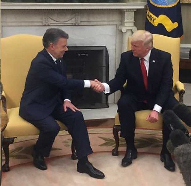 Cerca de una hora duró el encuentro entre los presidentes Juan Manuel Santos y Donald Trump quienes tras el mismo se dirigieron a la prensa. Santos señaló en su intervención tras esta reunión, que se afianzaron los lazos de cooperación entre ambos países.