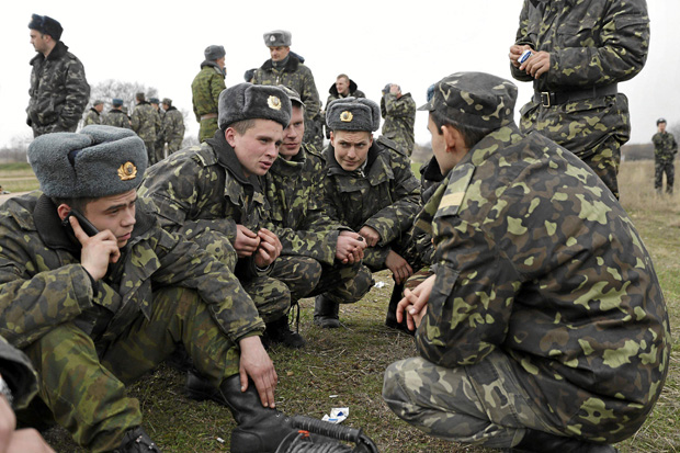 Los militares rusos (sin distintivo) les recibieron con disparos al aire, según puede verse en un vídeo colgado por la agencia local Unian, aunque tras unas breves negociaciones permitieron a los ucranianos tomar posiciones en la base.