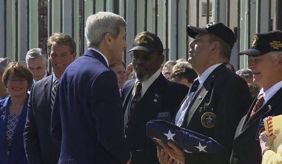 Los tres marines que arriaron en 1961 la bandera estadounidense en la embajada de La Habana fueron hoy los encargados de entregar la enseña en la ceremonia de izado presidida por Kerry, el primer secretario de Estado que visita la isla en 70 años.