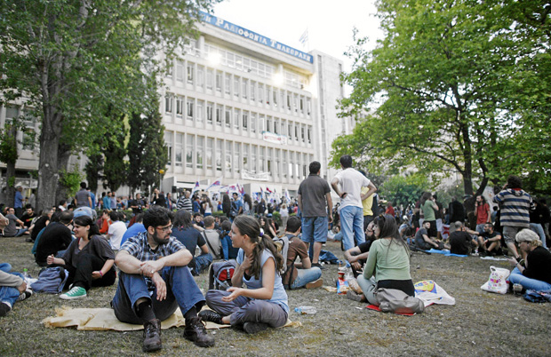 En Atenas, donde se encuentra la sede central de la ERT, entre 10.000 y 20.000 personas, dependiendo de las fuentes, se congregaron ante el edificio en una manifestación que reunió a ciudadanos de todas las edades y condiciones.