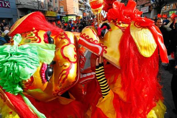 Un multicolor desfile capitaneado por una figura gigante de un gallo hecha con 220 mil piezas de Lego dio la bienvenida al Año del Gallo. De dos metros de altura, la figura fue montada por un grupo de cinco personas y llevó un mes y medio de trabajo. El evento de este año coincide con la conmemoración del 20 aniversario de la cesión de Hong Kong a China, dotando al evento de mayor color y participación. Tambores, leones chinos, dragones de colores, petardos y globos gigantes ambientaron la marcha de las carrozas y los artistas.