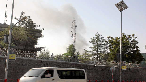 El ataque comenzó a las 6:30 de la mañana (02:00 GMT) cuando cuatro insurgentes suicidas trataron de acceder con documentos de identidad falsos al recinto de alta seguridad que alberga el Palacio Presidencial y el Ministerio de Defensa.