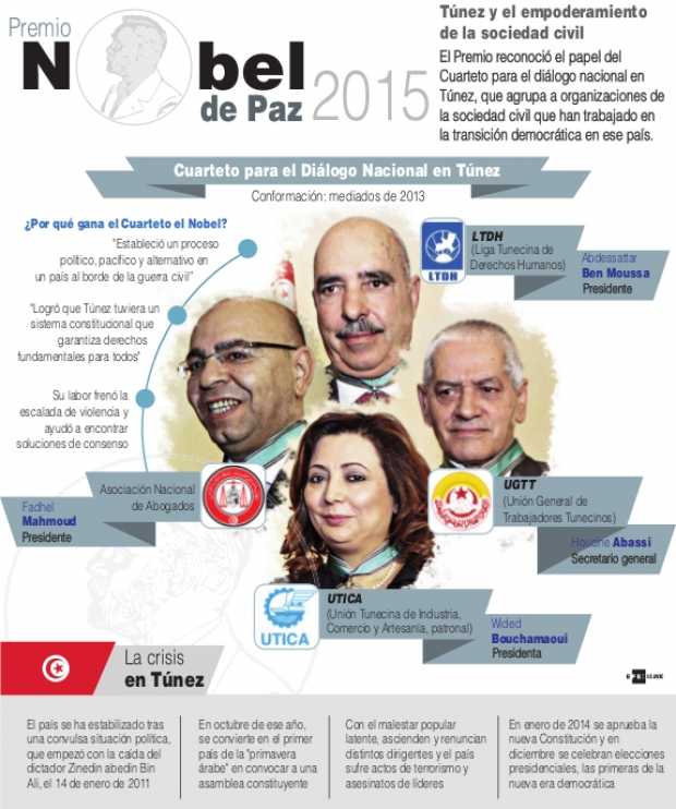Pese al esceptisismo ciudadano, Beji Caid Essebsi, presidente del país, señaló que en estos tiempo difíciles, es una oportunidad para demostrar que panorama de la nación no es oscuro y que el cuarteto, conformado en el 2013, fue un integrador del país en medio de la crisis (Ver infografía).