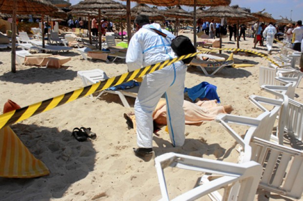 Según relataron responsables de seguridad del hotel, a primera hora de la mañana dos jóvenes que parecían uno más de los numerosos turistas que disfrutaban del sol penetraron en la playa y dispararon de forma indiscriminada.