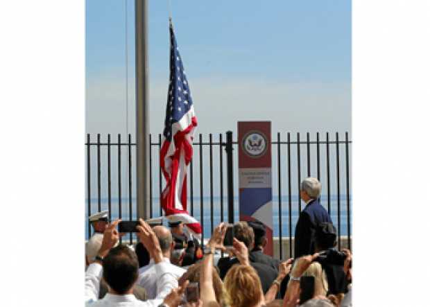La bandera de las barras y las estrellas ondea de nuevo en la embajada de Estados Unidos en Cuba, 54 años después de la ruptura diplomática entre dos naciones que ayer pusieron otro hito en su nueva era de relaciones con la presencia en la isla del secretario de Estado John Kerry.