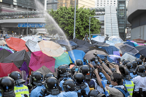 Cuando las fuerzas de seguridad abrieron el pasado domingo las latas de gases lacrimógenos y el humo salió, los manifestantes en Hong Kong solo tenían sus paraguas para protegerse.