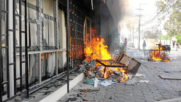 Personal de Protección Civil se presentó para combatir los incendios en la Contraloría, y en el Congreso, un grupo antimotines intentó sin éxito dispersar a los maestros, quienes posteriormente se retiraron a su campamento en el Zócalo de la ciudad.