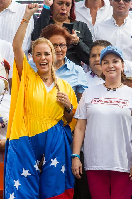 Leopoldo López está condenado a cerca de 14 años de prisión tras considerarle responsable de los hechos de violencia ocurridos el año pasado durante protestas opositoras, tras lo cual su esposa ha mantenido una activa presencia política.