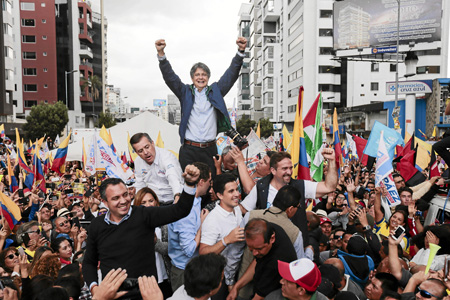 "Aquí no hemos estado para que nos den el triunfo ni para que nos alaben ni para nada, solamente para que la voluntad del pueblo sea respetada y el pueblo de Quito es el que se ha impuesto sobre la tiranía", dijo el candidato a la Vicepresidencia.