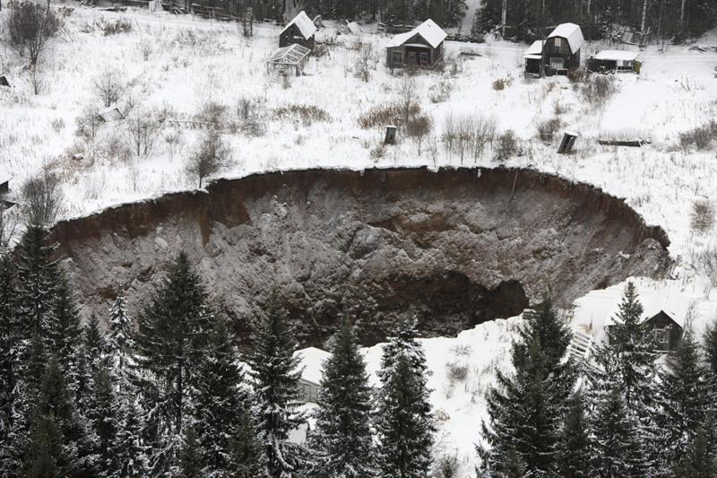 Un agujero de 50 metros de diámetro se tragó varias casas en Rusia
