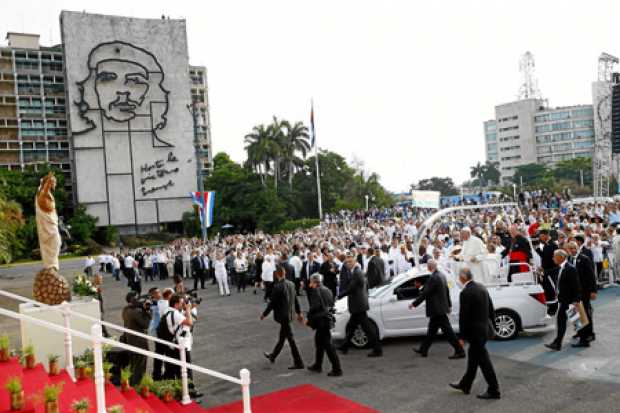 Feligreses de todas las edades y procedencias, se congregaron en el lugar, donde Francisco, flanqueado por la efigie del guerrillero Ernesto Che Guevara, argentino como él, y el prócer independentista cubano José Martí, ofreció su primera misa en la isla.